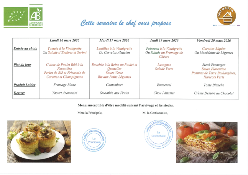 PLACE DANIEL BRETON Téléphone : +33 3 21 29 18 71 Fax : +33 3 21 29 77 75 A V E N I R Le 16 mars 2026 de 8h00 à 12h00 : Certification allemand (oral). Le 19 mars 2026 : Sortie à l'opéra de Lille et visite guidée de la ville pour les 4e. Le 19 mars 2026 : Accueil d'élèves de CM2 (semaine des mathématiques). Le 19 mars 2026 de 13h15 à 15h30 : Certification allemand (oral). |